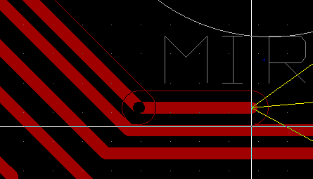 Next, we move the cursor right into the keep-out area of the neighbouring trace. Conflict avoidance detects the problem and pushes the trace's endpoint far enough away that the clearance is honored.